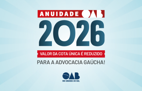 Mantendo o compromisso firmado com a advocacia gaúcha desde 2022, a OAB/RS anuncia mais um passo na garantia de alívio financeiro para a classe: em 2026, haverá redução no valor da anuidade para pagamento em cota única.