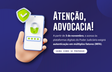 A partir de 3 de novembro, o acesso às plataformas digitais do Poder Judiciário, como o Processo Judicial Eletrônico (PJe), o eproc, o Portal jus.br e outras aplicações integradas à Plataforma Digital do Poder Judiciário (PDPJ) e ao SSO (Single Sign On), exigirá autenticação em múltiplos fatores (MFA). A medida, segundo reforça o Conselho Nacional de Justiça (CNJ), visa à segurança digital dos usuários externos, como advogados, peritos e partes, evitando o uso indevido de credenciais e o acesso por terceiros não autorizados.