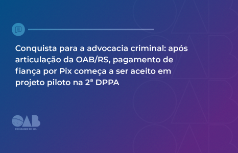 A pauta integra uma série de tratativas institucionais conduzidas pela OAB/RS desde o início da atual gestão, em 2022, para viabilizar o uso do Pix no pagamento de fiança, conforme registrado em reuniões com a Chefia da Polícia Civil, com representantes do Tribunal de Justiça do Rio Grande do Sul (TJRS) e da Secretaria Estadual da Fazenda e em deliberações dos Colégios de Presidentes da instituição.