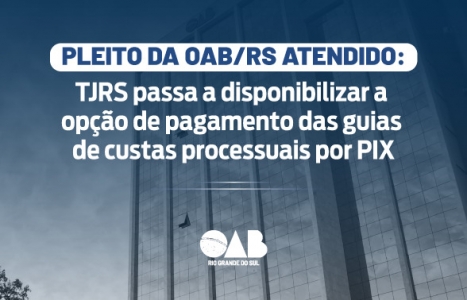 OAB/RS teve mais um pleito atendido pelo Tribunal de Justiça do Rio Grande do Sul (TJRS) que trará importante benefício e facilidade às advogadas e advogados gaúchos. Em ofício publicado na noite da quarta-feira (31), o órgão informou que irá disponibilizar no sistema eproc a opção de pagamento das guias de custas processuais por PIX. A decisão ocorre depois de reiteradas ações da Ordem gaúcha durante o último ano, por meio de reuniões e documentos encaminhados à Corte solicitando essa deliberação.